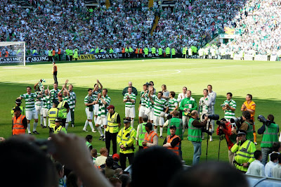 O Celtic sagrou-se tri-campeão da SPL após vencer o Dundee Utd no Tannadice Park por 1-0. O Aberdeen fez sua parte e ganhou seu jogo por 2-0. Jan Vennegoor of Hesselink marcou de cabeça para o Celtic. O helicóptero com a taça estava sobrevoando o Tannadice Park quando Stuart Dougal apitou o fim de jogo, para alegria da torcida, dos jogadores e do mais entusiasmado da comissão técnica, Neil Lennon. O Celtic levantou o troféu ao som de 'One More Time' do Daft Punk e depois comemorou a conquista com a torcida ao som de 'Chelsea Dagger' dos Fratellis, e, é claro, sem contar com as inúmeras reproduções de You'll Never Walk Alone, The Celtic Song, Willie Malley, Fields of Athenry, entre outras. Agora o Celtic possui 42 títulos nacionais e 90 troféus de títulos principais.
